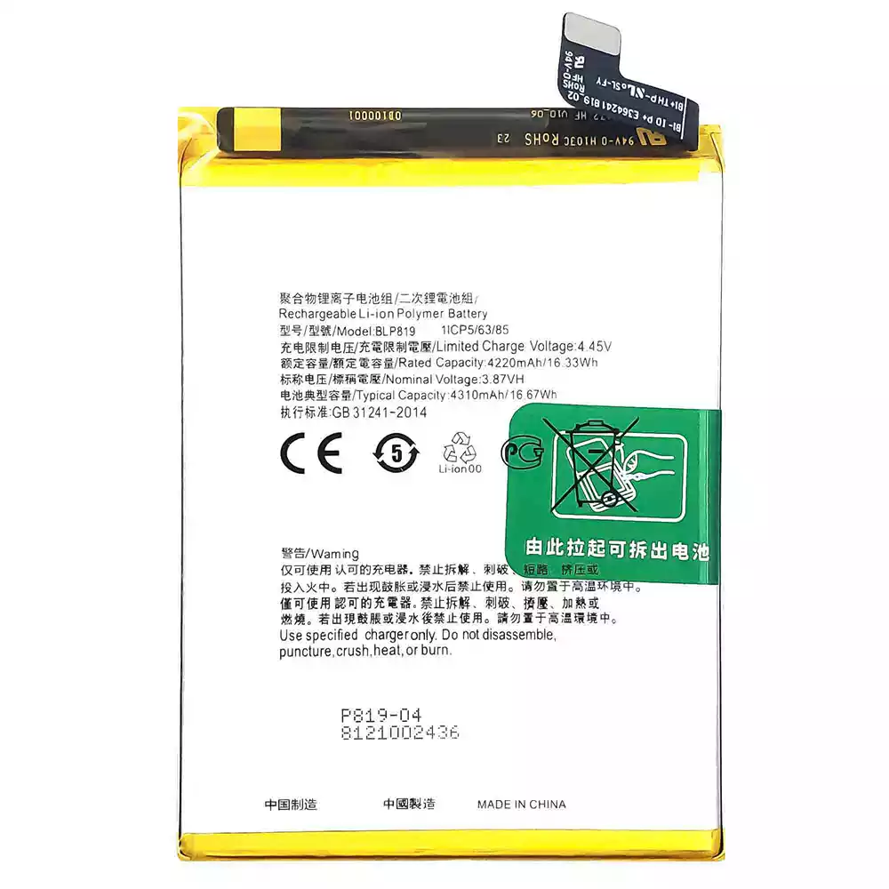 Battery BLP819 for OPPO Reno 5 4G /Reno 6 4G /F19 Pro Plus /Reno 5 Lite /Reno 5Z