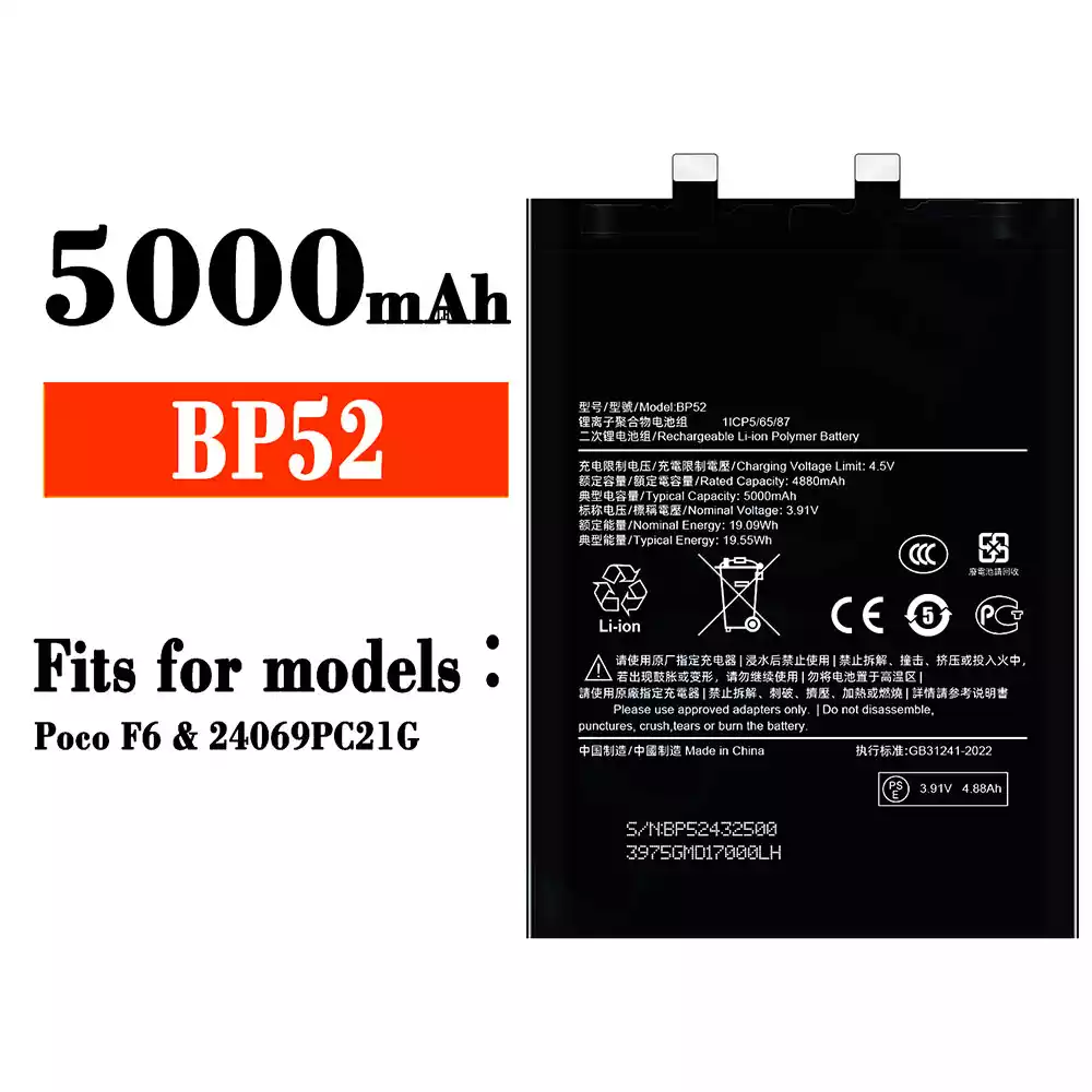 Battery BP52 for Xiaomi Poco F6 / 24069PC21G