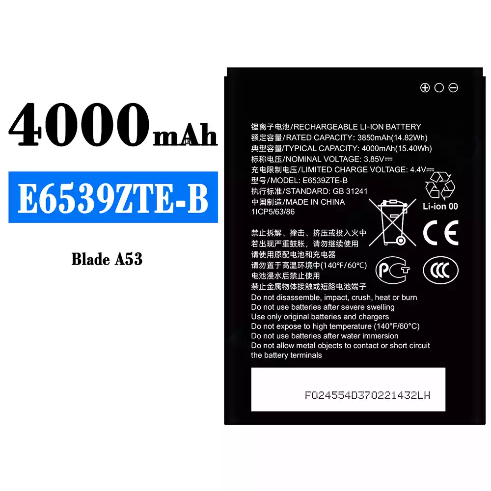 New phone battery E6539ZTE-B for ZTE Blade A53