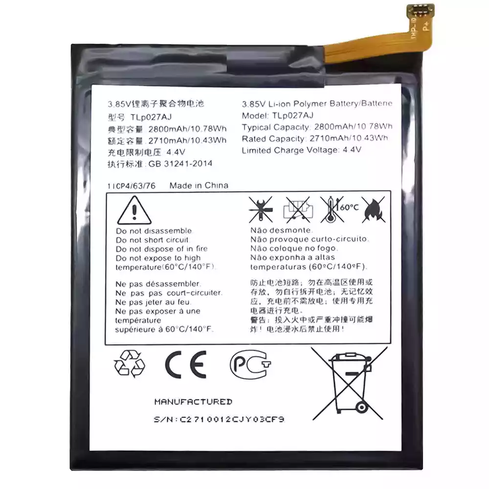 New phone battery TLP027AJ for Alcatel A5 LED/OT5085/5085I/5085Q/5085D